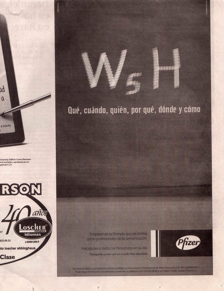 Brief: A greeting ad is needed for journalists on their day, conveying that Pfizer shares their commitment and dedication to Venezuelans.